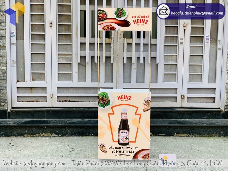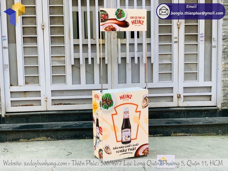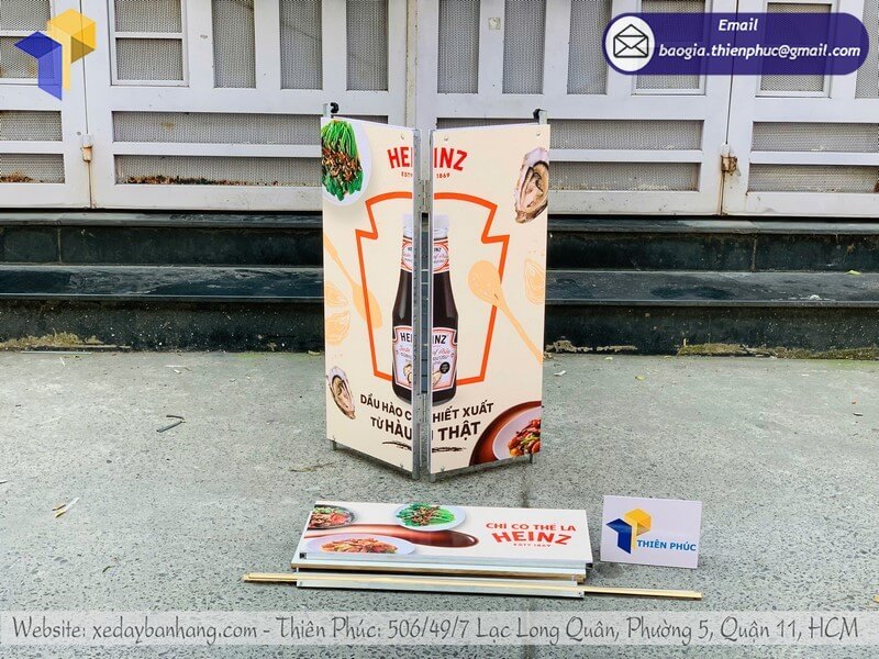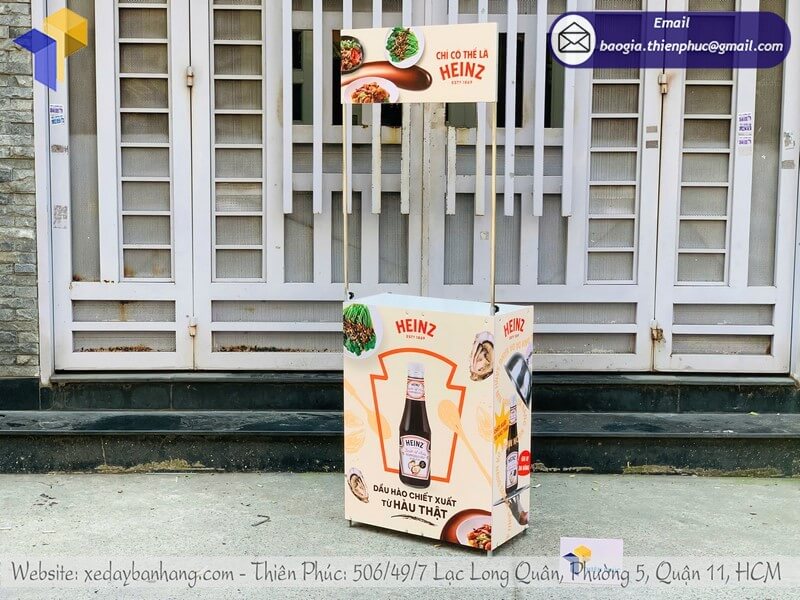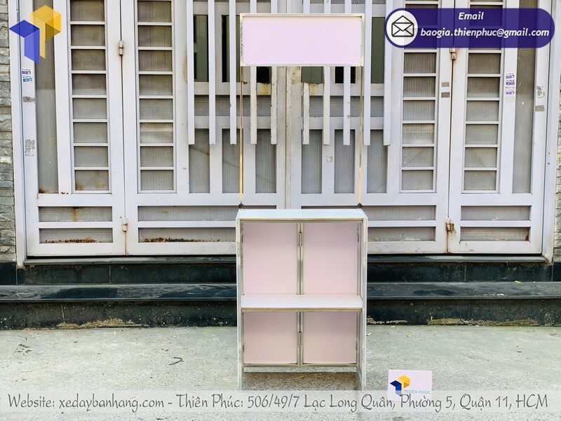 Mặt trước bàn, 2 bên thân và phần hộp tiêu đều có thể in hình ảnh sản phẩm, logo và thông điệp quảng cáo. Công nghệ in decal hiện đại mang lại màu sắc nổi bật, bền màu, khó bong tróc.