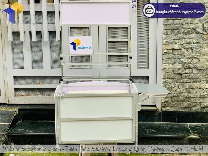 ✅ 2 Bệ xếp phụ bên hông có khóa bấm tự động rộng 25cm ( thêm không gian trưng bày sản phẩm )