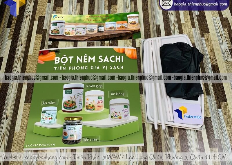 - Túi đựng chuyên dụng: Đi kèm mỗi bộ booth nhựa sampling là túi vải bạt Oxford dày dặn, có quai đeo chắc chắn, giúp bảo vệ quầy tối đa trong quá trình di chuyển bằng xe máy hoặc ký gửi xe khách.