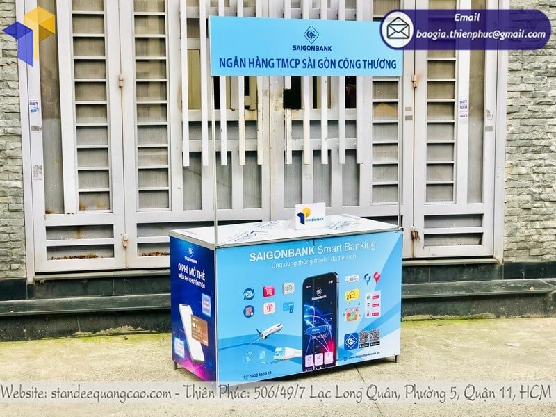 Không chỉ các thương hiệu tiêu dùng nhanh sử dụng booth sampling. Ngân hàng SaigonBank đã ứng dụng booth sampling tại các trung tâm thương mại và sự kiện tài chính để giới thiệu dịch vụ thẻ ATM, ưu đãi mở tài khoản và Smart Banking – thu hút lượng lớn khách hàng đăng ký ngay tại chỗ. Đây là minh chứng rõ ràng về sức mạnh kích hoạt thương hiệu (Brand Activation) của booth sampling trong thực tế.