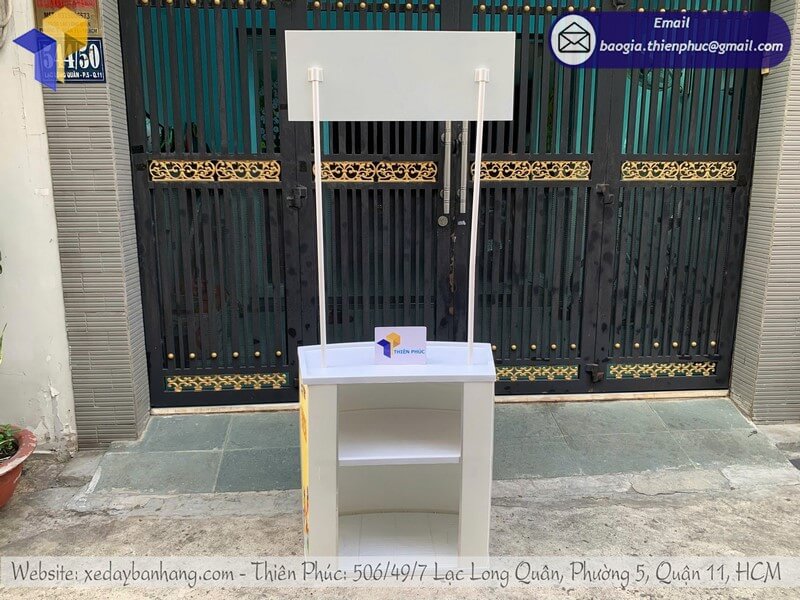+ Hai cây chống nối với logo và phần quầy bằng thép ống sơn trắng