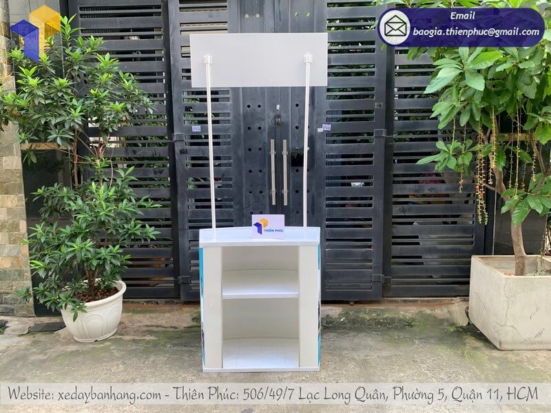 + Hai cây chống nối với logo và phần quầy bằng thép ống sơn trắng