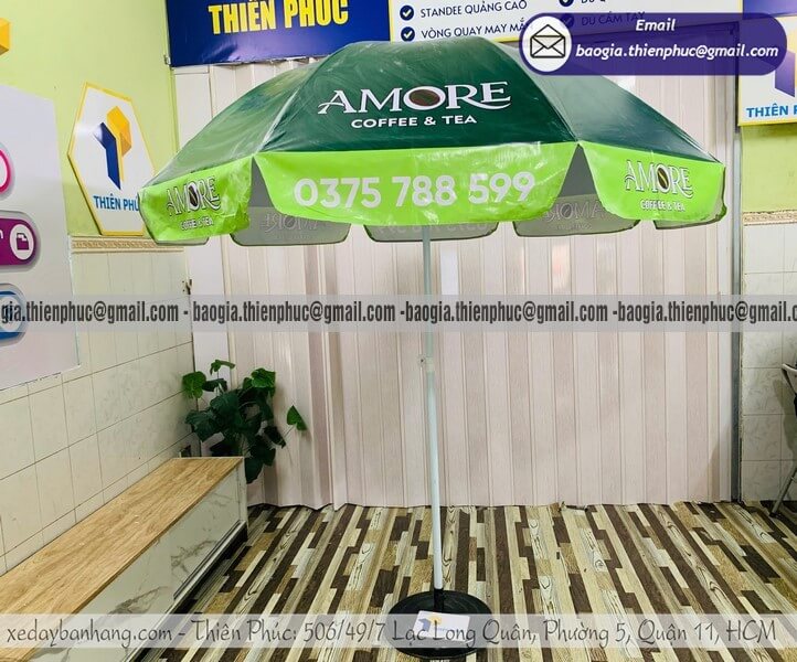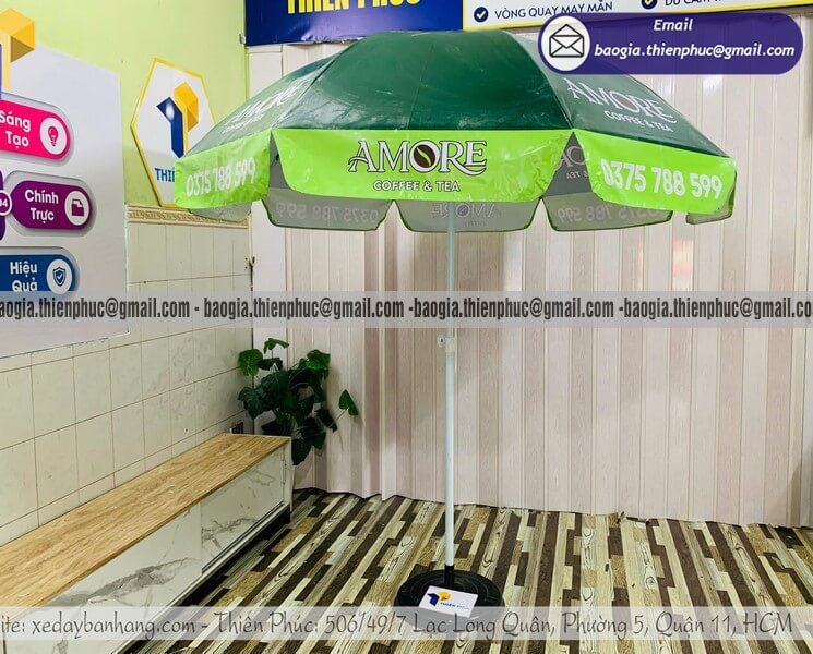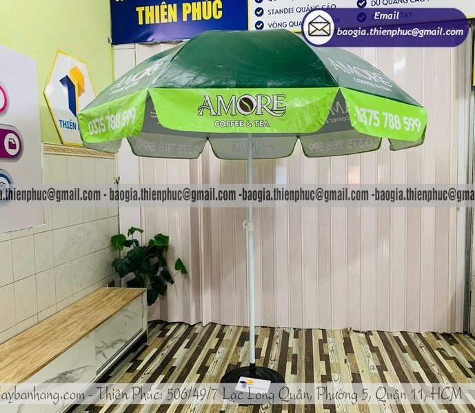 Nếu để ý kỹ, bạn sẽ thấy hầu hết các quán cafe, cửa hàng ăn uống hay booth sự kiện đều sử dụng ô dù in logo. Lý do rất đơn giản: sản phẩm này kết hợp được hai yếu tố quan trọng – công năng sử dụng và khả năng quảng bá thương hiệu.