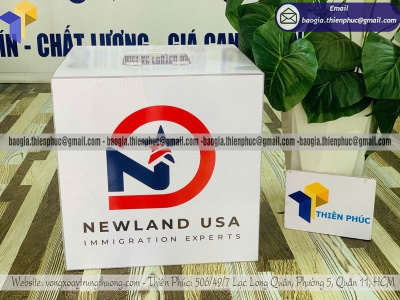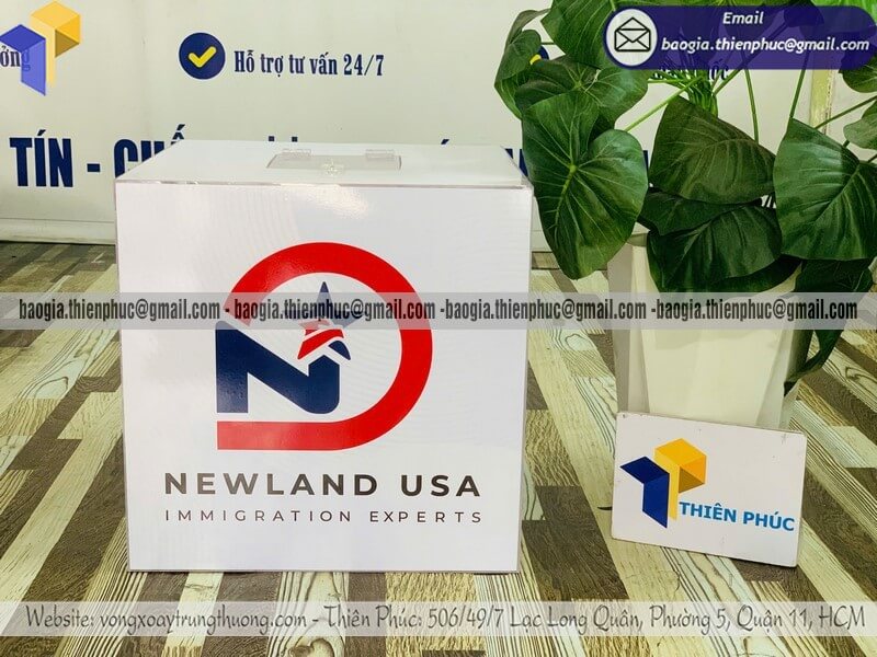 Thùng phiếu mica in logo, decal