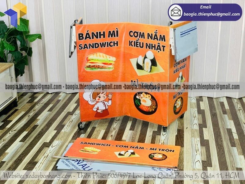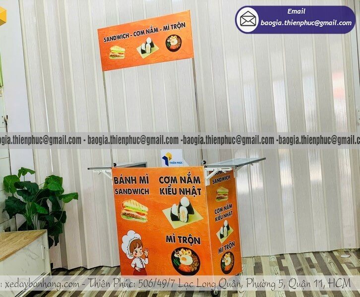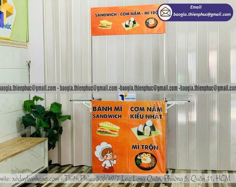Kích thước phù hợp với mặt bằng: Bạn bán ở vỉa hè hẹp, trong khuôn viên trường học hay góc phố đông người? Kích thước xe sẽ được thiết kế vừa vặn với không gian thực tế, không thừa, không thiếu.