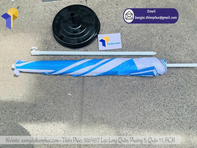 + Đóng gói: Bọc nylon từng cây dù, mỗi cây đều được phủ bột cát lên mặt dù chống dính lem màu in.