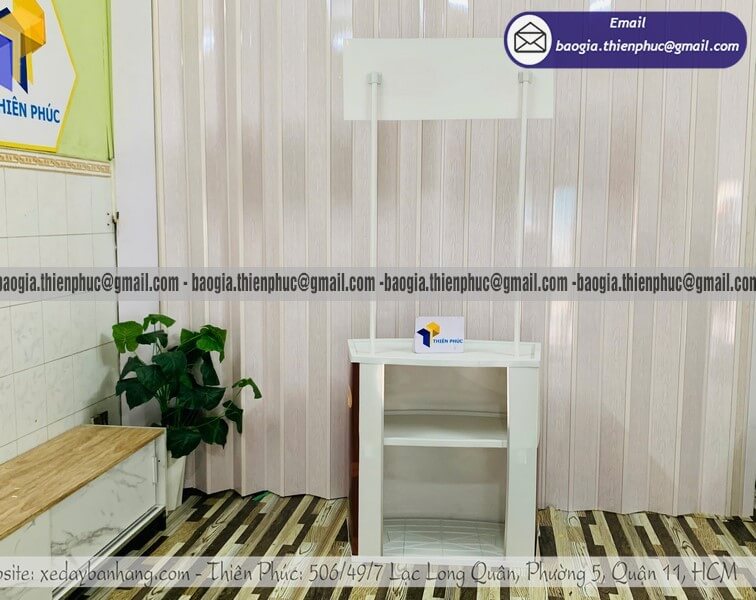 + Hai cây chống nối với logo và phần quầy bằng thép ống sơn trắng