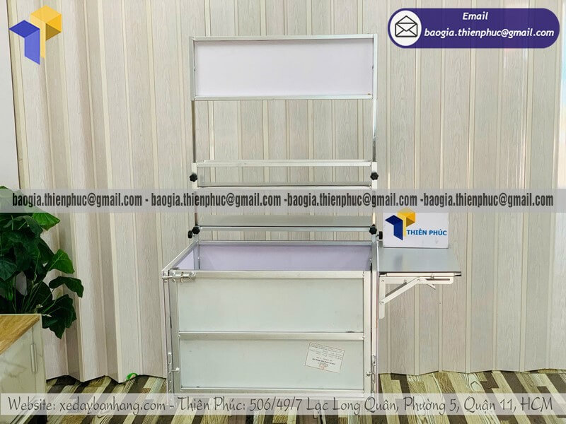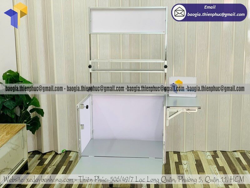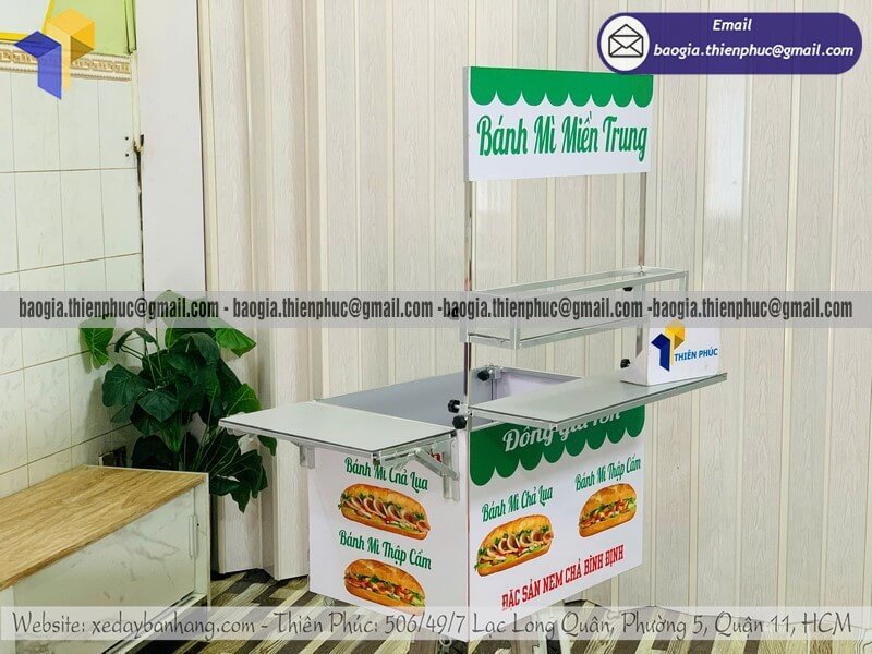 Một số mẫu thùng được thiết kế thêm kệ phía trước để trưng bày bánh mì hoặc bảng menu, giúp khách hàng dễ dàng quan sát.