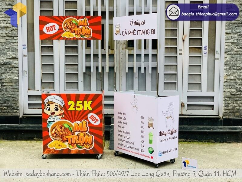 Khi đặt hàng online, bạn có thể dễ dàng so sánh nhiều mẫu xe đẩy bán hàng khác nhau: từ loại nhỏ gọn cho bán cafe, đồ ăn vặt, đến loại lớn cho kinh doanh nước giải khát, thức ăn nhanh. Giá cả minh bạch, nhiều ưu đãi giảm giá giúp bạn tiết kiệm chi phí đầu tư ban đầu.