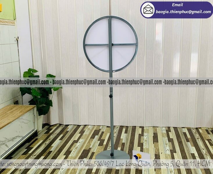 Ngân sách 500.000đ – 1.500.000đ: Lý tưởng cho cửa hàng F&B, thời trang hoặc sự kiện nội thất quy mô nhỏ. Có thể đặt vòng quay đứng cỡ vừa, in UV logo thương hiệu đầy đủ.