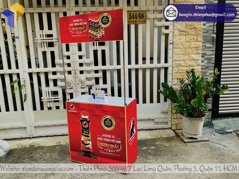 Booth di động được sản xuất với tiêu chuẩn cao, vật liệu bền bỉ, màu sắc sống động, đảm bảo sử dụng lâu dài và phù hợp với nhiều sự kiện khác nhau.