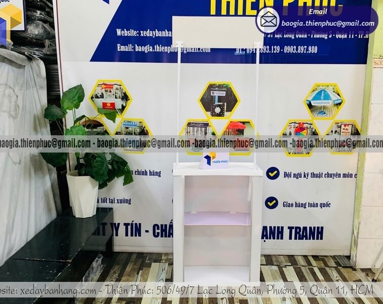 Liên hệ 0947.893.139 - 0903.897.980 đặt làm quầy nhựa bán hàng di động theo yêu cầu, đúng kích thước, đúng mục đích sử dụng.