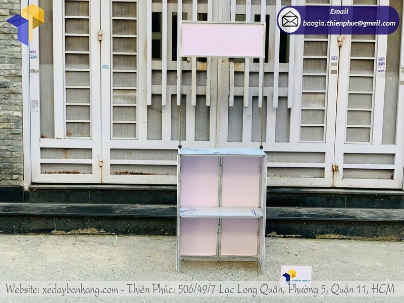 Với thiết kế linh hoạt, quầy sampling di động có thể dễ dàng thay đổi nội dung trưng bày theo từng chiến dịch, giúp doanh nghiệp tái sử dụng nhiều lần mà vẫn đảm bảo hiệu quả quảng cáo.