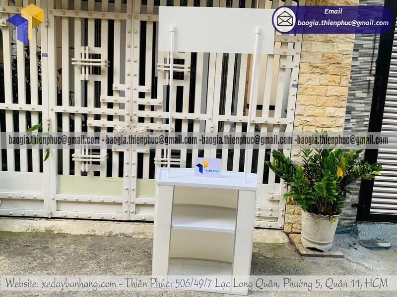 + Hai cây chống nối với logo và phần quầy bằng thép ống sơn trắng