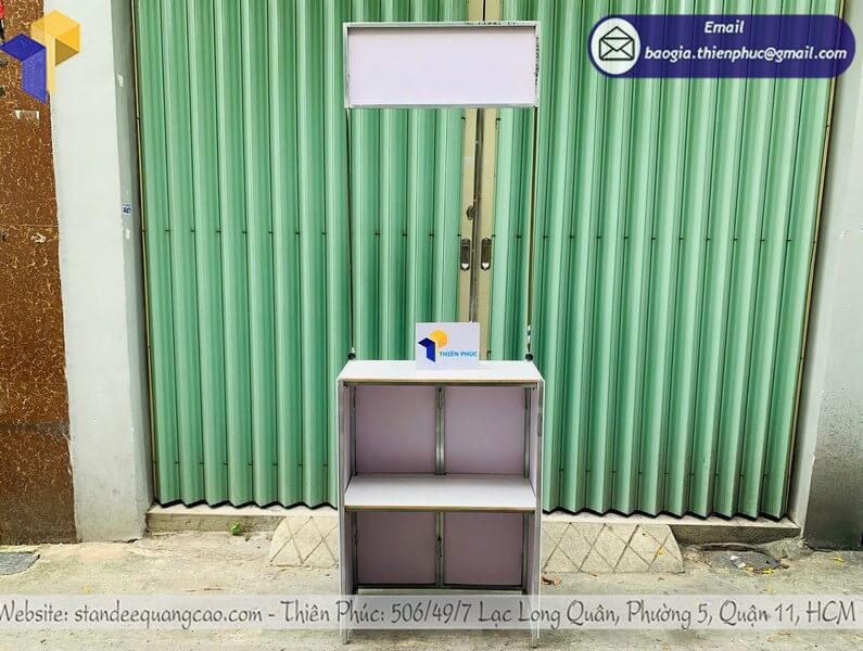 Quầy nhựa sẽ có giá thấp hơn quầy khung nhôm hoặc quầy in PP cao cấp.