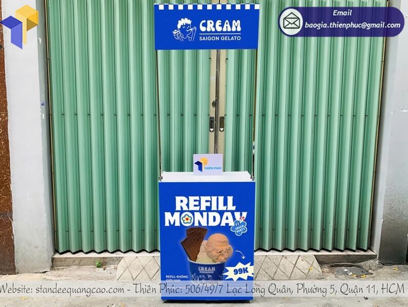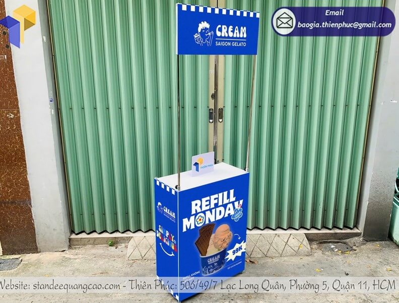 Logo, slogan, hình ảnh sản phẩm đều được thể hiện sắc nét trên bề mặt quầy. Khách hàng chỉ cần nhìn từ xa đã biết bạn đang giới thiệu thương hiệu nào.