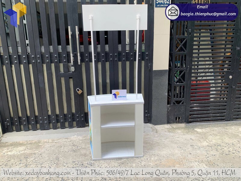 + Hai cây chống nối với logo và phần quầy bằng thép ống sơn trắng