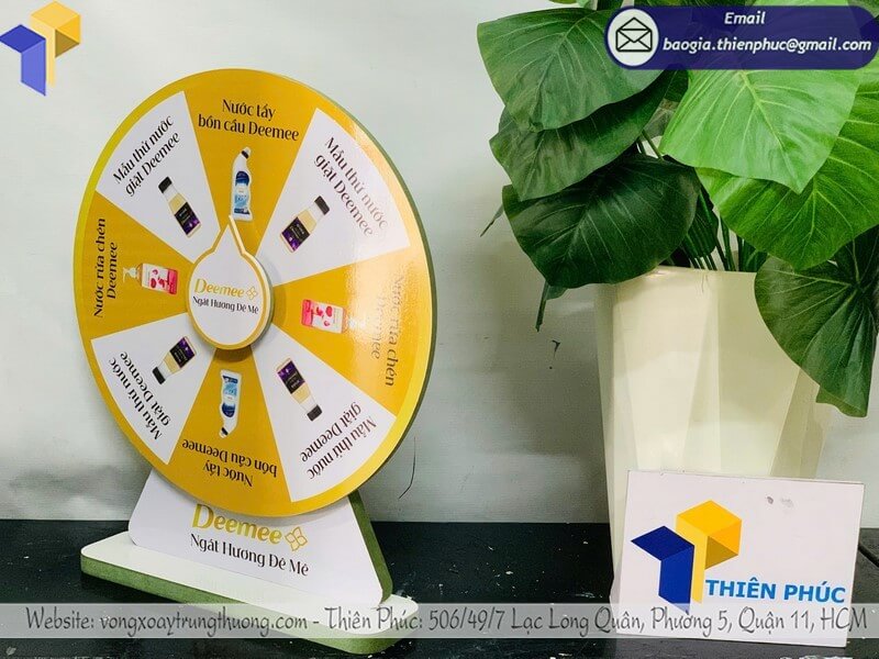 Đơn vị sản xuất vòng quay may mắn chuyên nghiệp luôn sẵn sàng đồng hành cùng doanh nghiệp của bạn trong mọi chương trình, mang đến sản phẩm chất lượng – bền đẹp – chuẩn nhận diện – giá tốt.