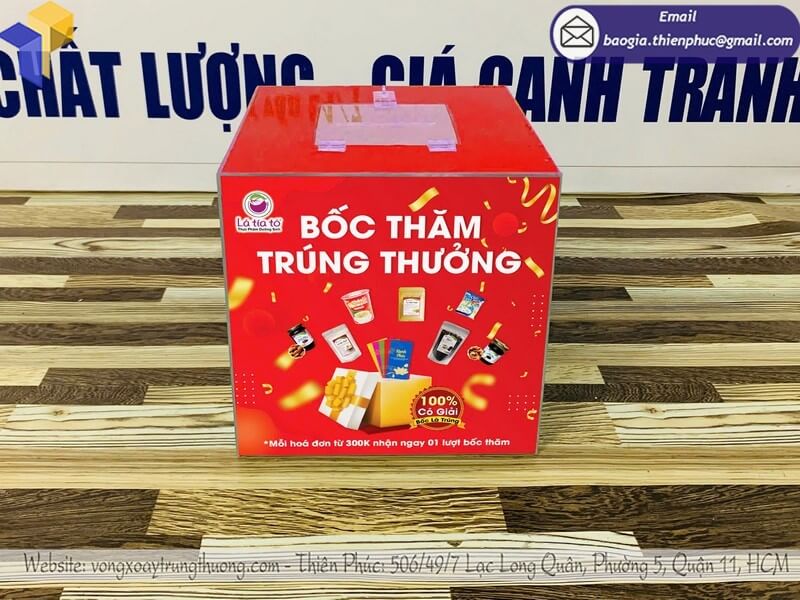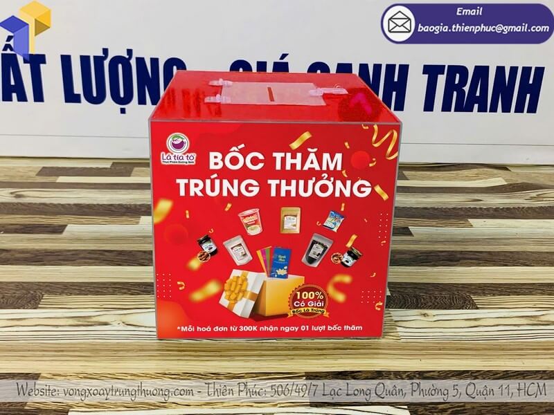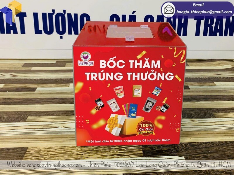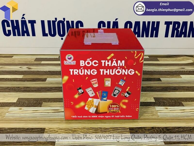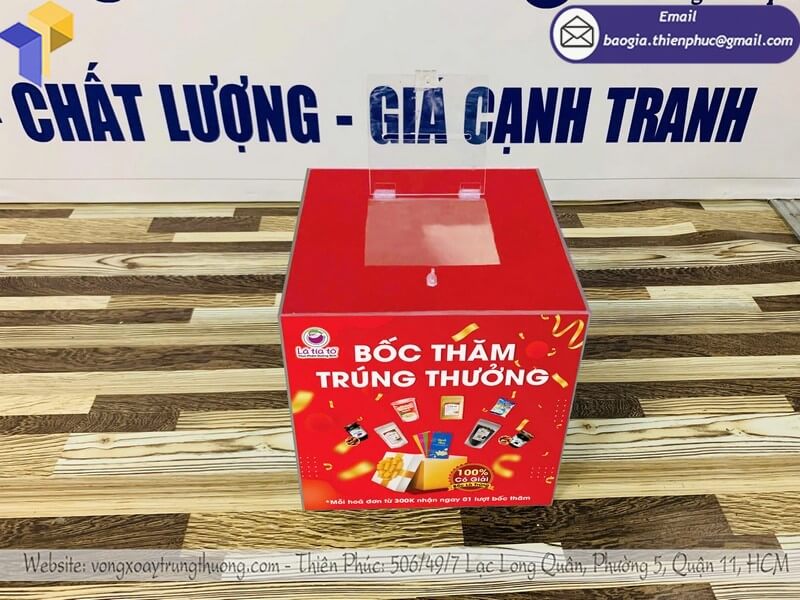 Thùng phiếu mica là lựa chọn lý tưởng cho các chương trình bốc thăm, rút thăm may mắn tại sự kiện, hội chợ, triển lãm, giúp khách tham gia trải nghiệm vui vẻ và chuyên nghiệp.