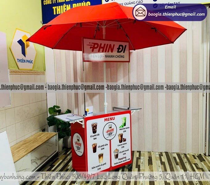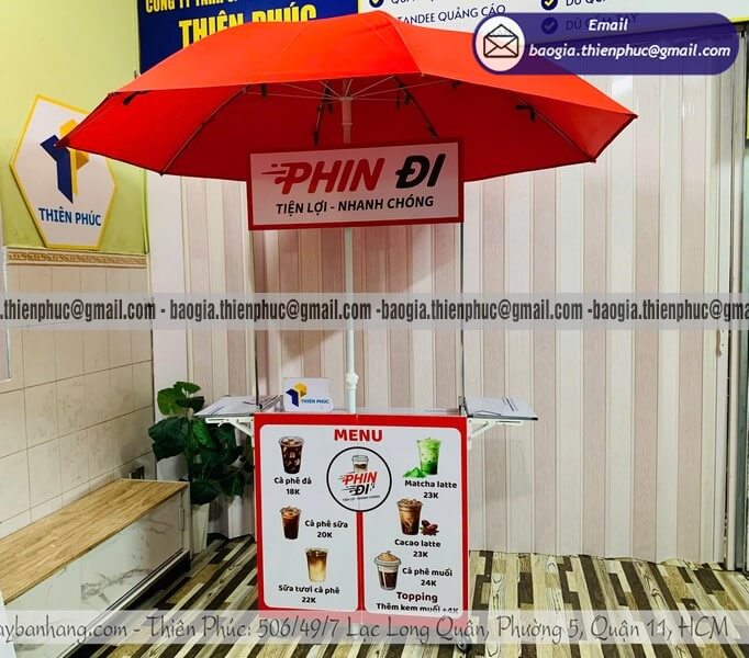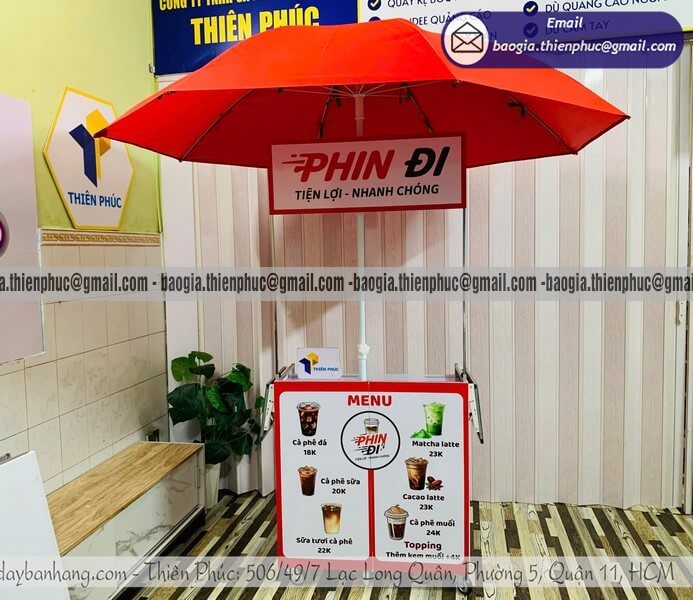 Thích hợp: cho các bạn trẻ kinh doanh ít vốn mở bán trà sữa, cà phê lưu động, hoặc các đại lý muốn mở rộng kênh bán hàng lưu động xe bán cafe gắn dù
