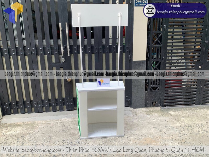 + Hai cây chống nối với logo và phần quầy bằng thép ống sơn trắng