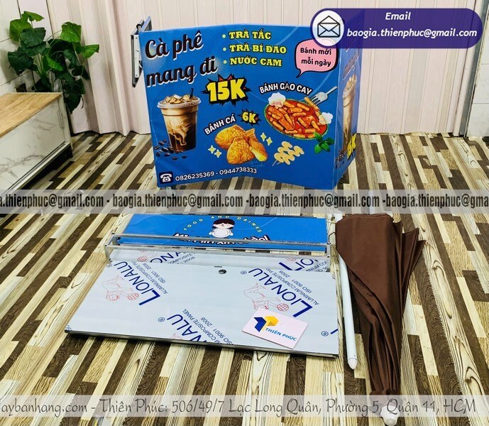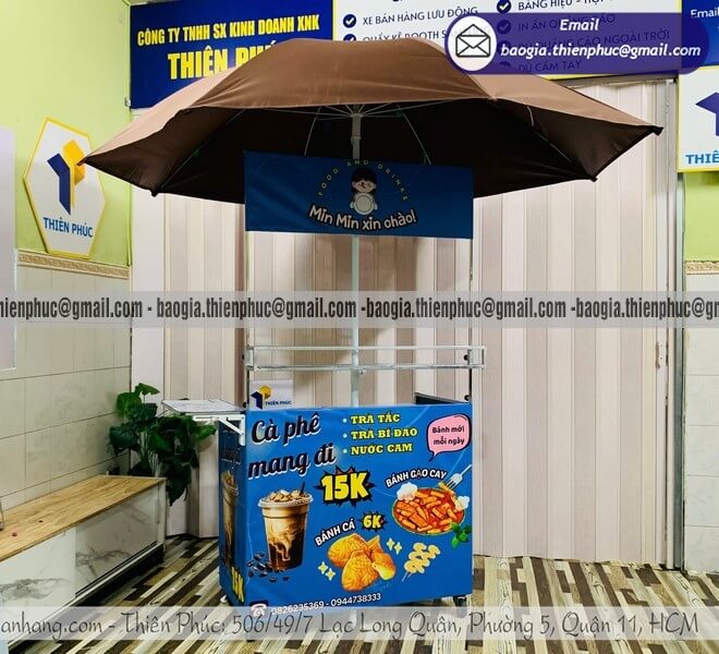 Thích hợp: cho các bạn trẻ kinh doanh ít vốn mở bán trà sữa, cà phê lưu động, hoặc các đại lý muốn mở rộng kênh bán hàng lưu động xe bán cafe gắn dù