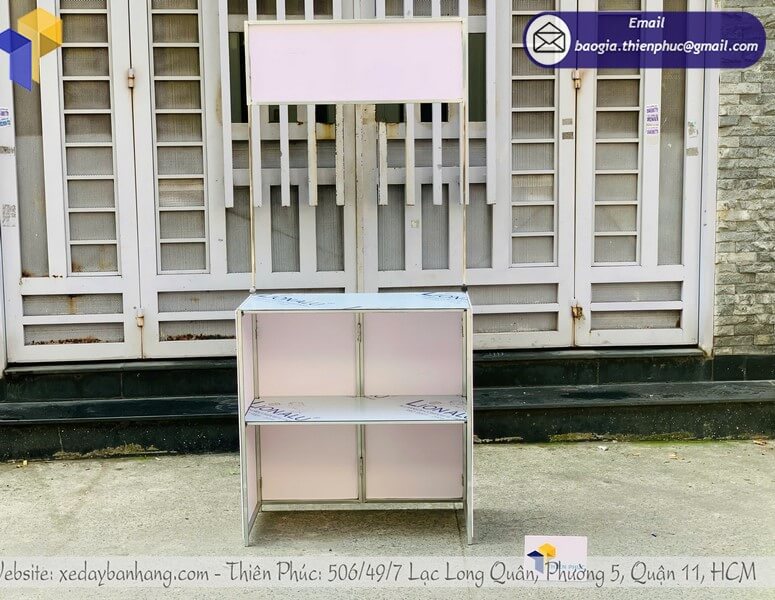 + Mặt trên quầy và vách ngăn bên trong bằng khung sắt ốp alu chống thấm nước