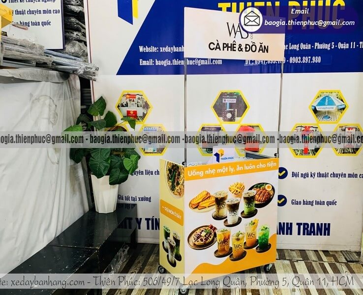 Liên hệ 0947.893.139 - 0903.897.980 đặt làm xe đẩy bán đồ ăn sáng theo yêu cầu, tối ưu cho việc gấp gọn và di chuyển