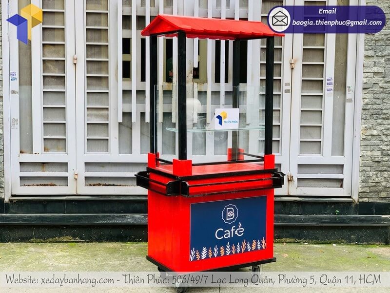 Một chiếc xe gỗ bán cafe đẹp mắt không chỉ giúp bán hàng hiệu quả mà còn tạo điểm nhấn cho không gian. Gỗ tự nhiên mang đến cảm giác gần gũi, sang trọng và thân thiện với khách hàng.