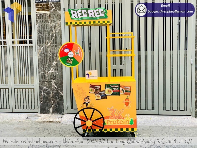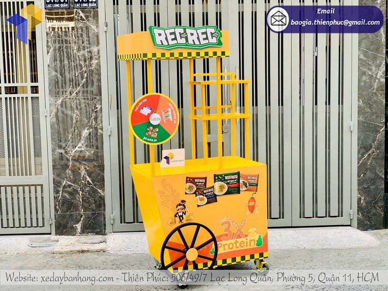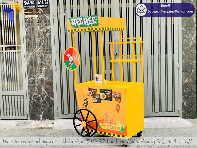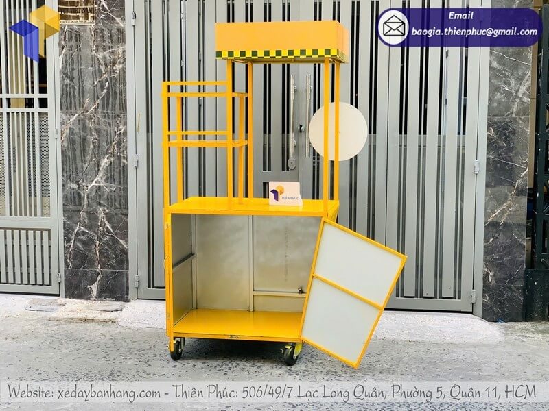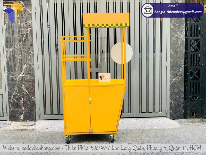 Kích thước xe phải gọn gàng, dễ di chuyển nhưng vẫn đủ diện tích để trưng bày sản phẩm nổi bật. Bố cục thường được tính toán để khách hàng có thể quan sát và tiếp cận sản phẩm từ nhiều góc khác nhau mà không gây cản trở lối đi chung.