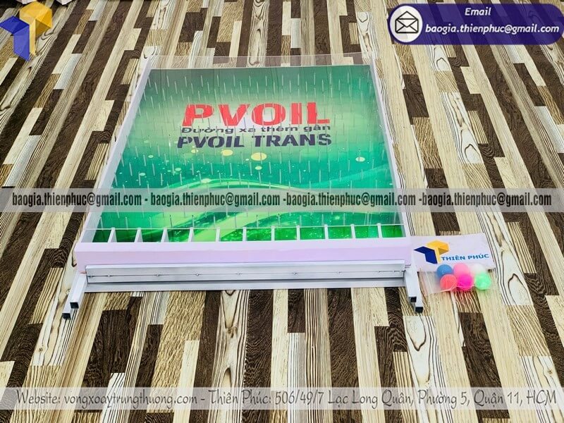 Đội ngũ sản xuất sẽ hỗ trợ tư vấn kích thước bảng trò chơi, bố cục phần thưởng và thiết kế phù hợp với concept sự kiện.